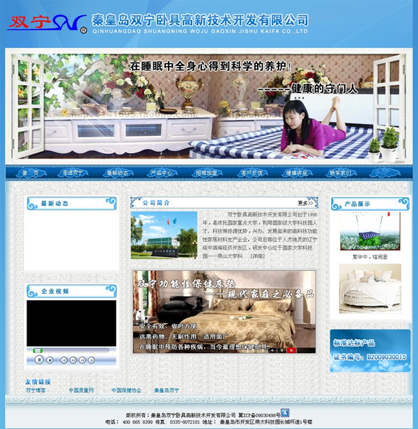 雙寧臥具高新技術(shù)開(kāi)發(fā)有限公司創(chuàng)于1996年,是依托國(guó)家重點(diǎn)大學(xué),利用國(guó)家級(jí)大學(xué)科技園人才、科技等資源優(yōu)勢(shì),興辦、發(fā)展起來(lái)的高科技功能性家居材料生產(chǎn)企業(yè)。公司總部位于人杰地靈的遼寧綏中濱海經(jīng)濟(jì)開(kāi)發(fā)區(qū),研發(fā)中心位于國(guó)家大學(xué)科技園——燕山大學(xué)科技園。